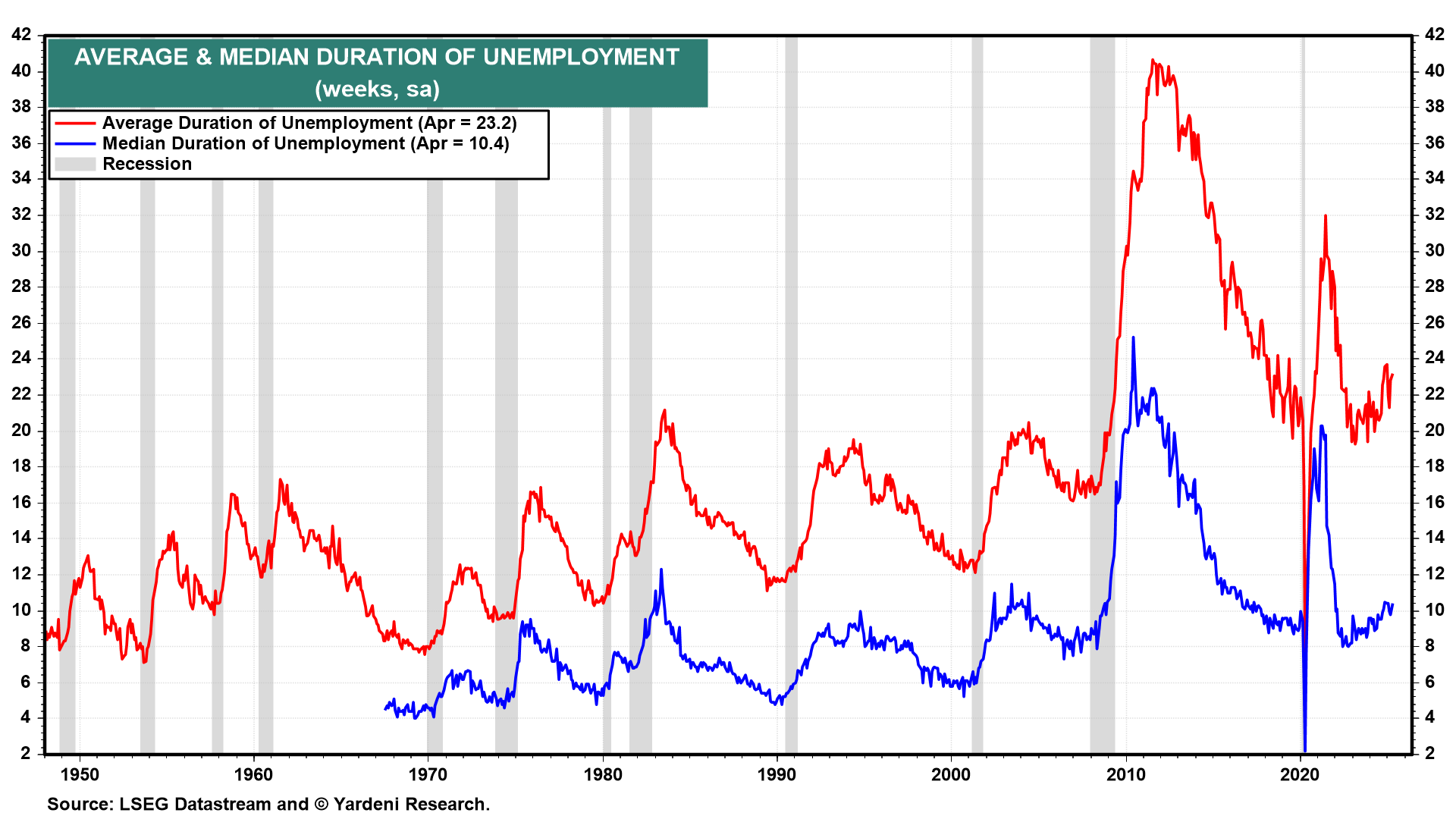 The average and median durations of unemployment have increased slightly over the past year.