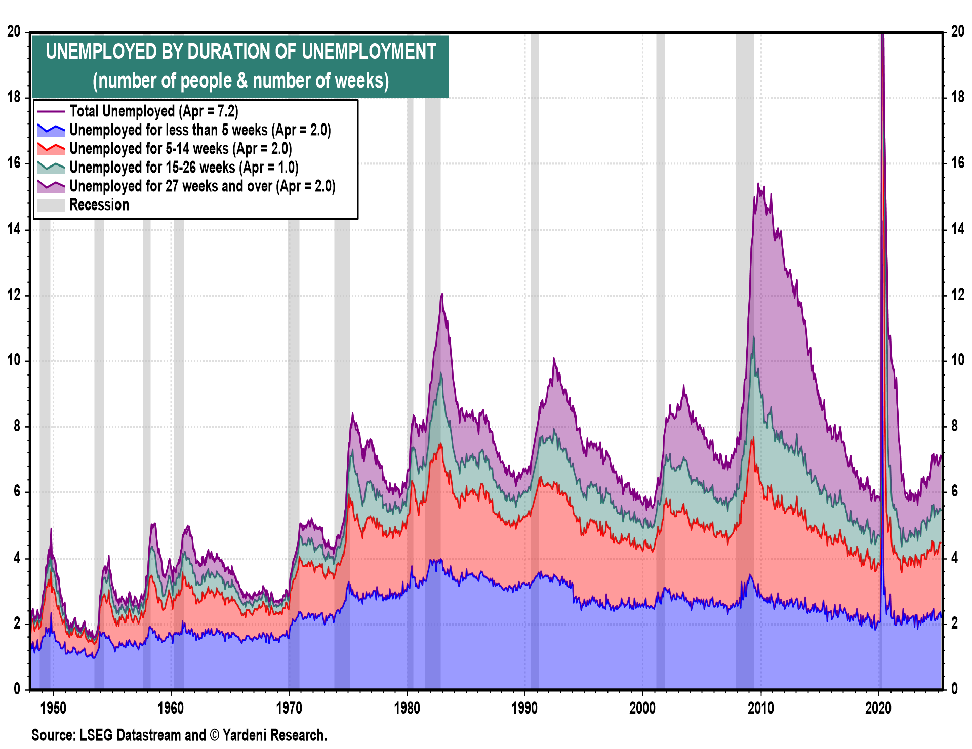 The number of unemployed workers has increased as the duration of unemployment has increased.
