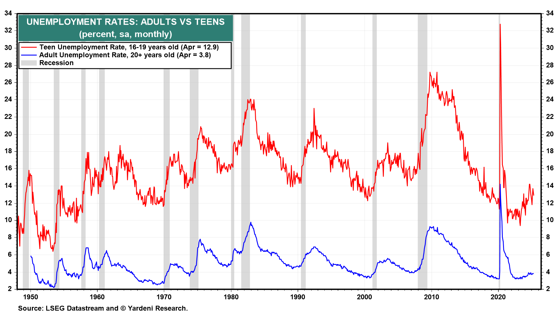 The teen unemployment rate has soared recently possibly as this age group is experiencing more competition from immigrants.