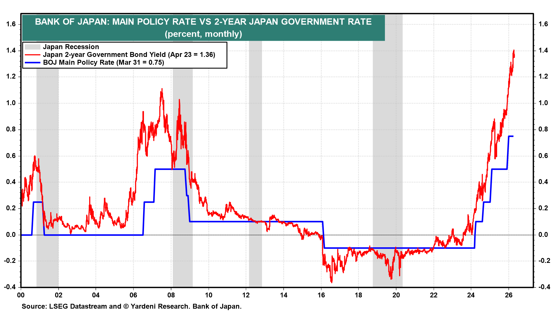 BANK OF JAPAN: MAIN POLICY RATE VS 2-YEAR JAPAN GOVERNMENT RATE
