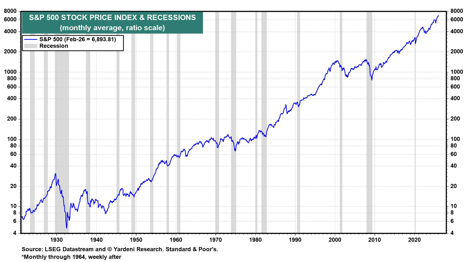 S&P 500 STOCK PRICE INDEX & RECESSIONS