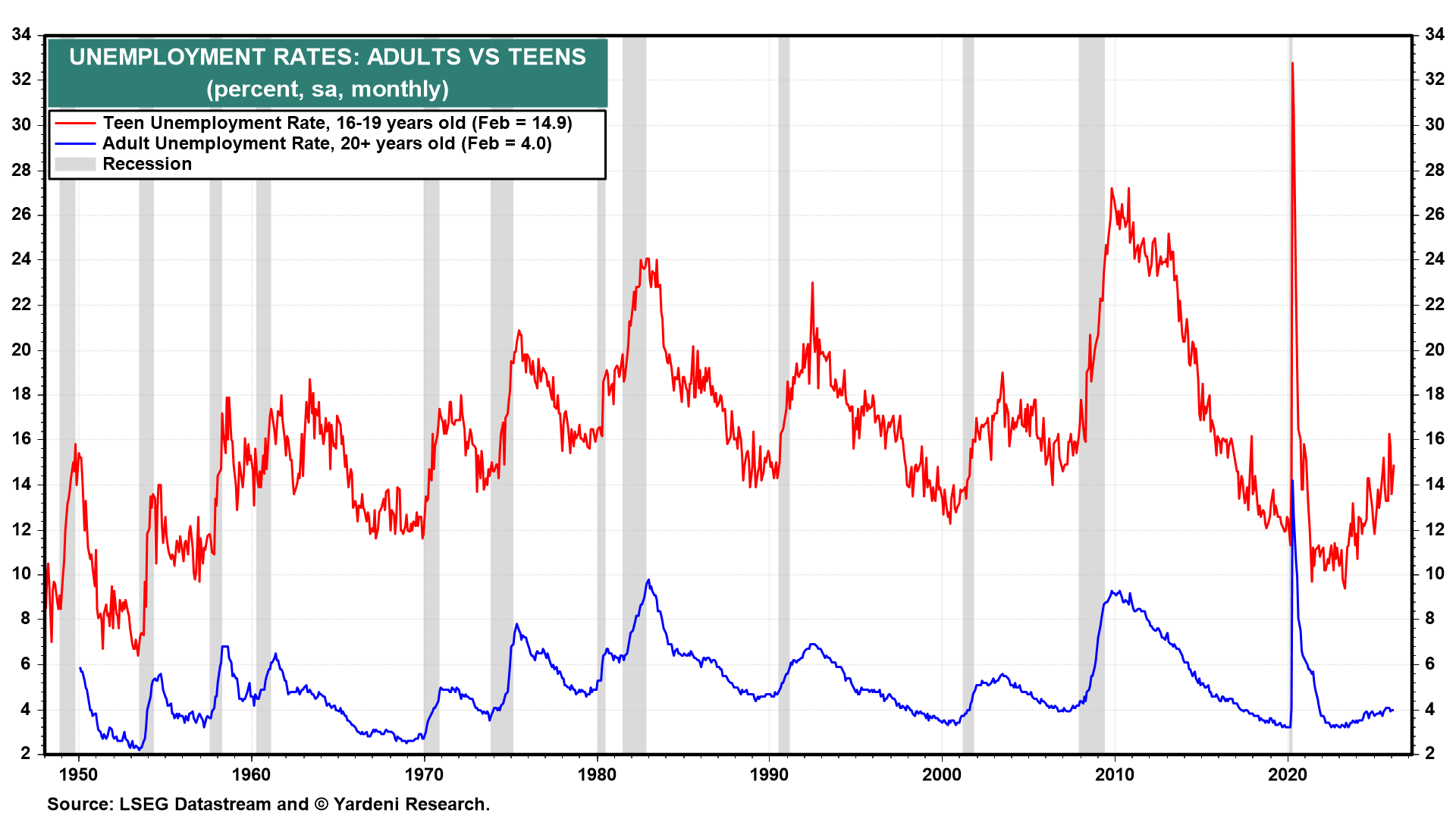 The teen unemployment rate has soared recently possibly as this age group is experiencing more competition from immigrants.